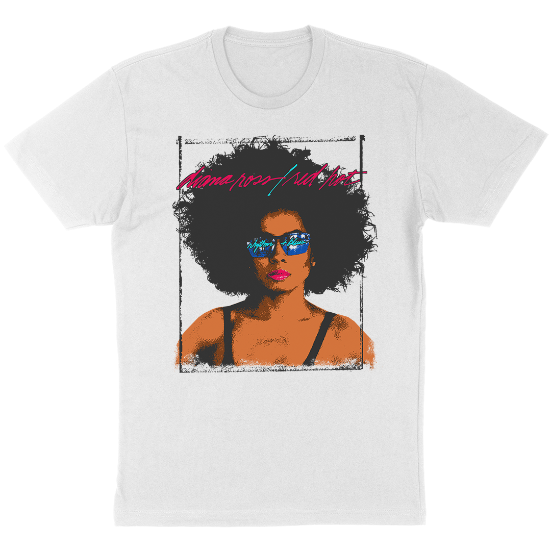 A unisex white t-shirt, with Diana Ross "Red Hot" graphic printed on the front.