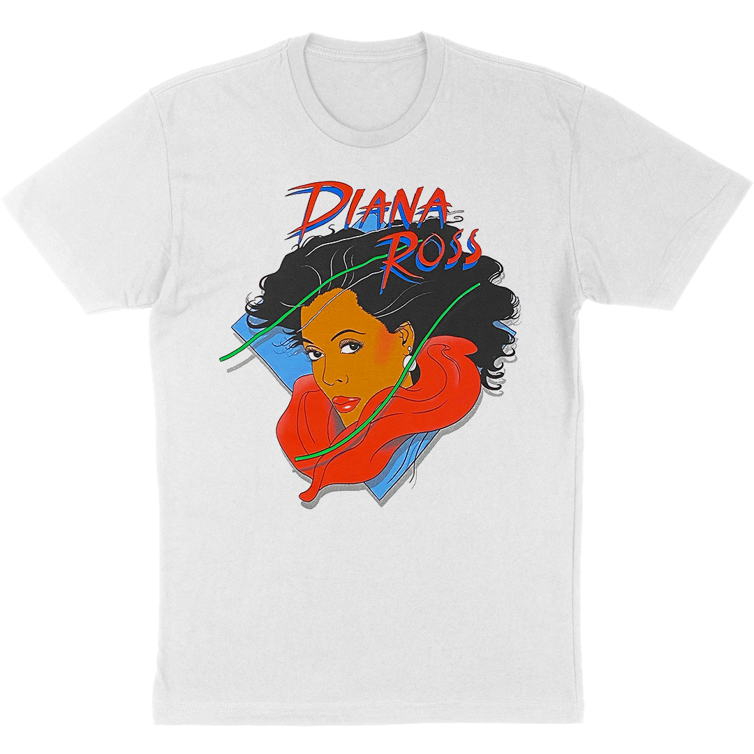 A unisex white t-shirt with the Diana Ross "Red Scarf Illustration" graphic printed on the front.