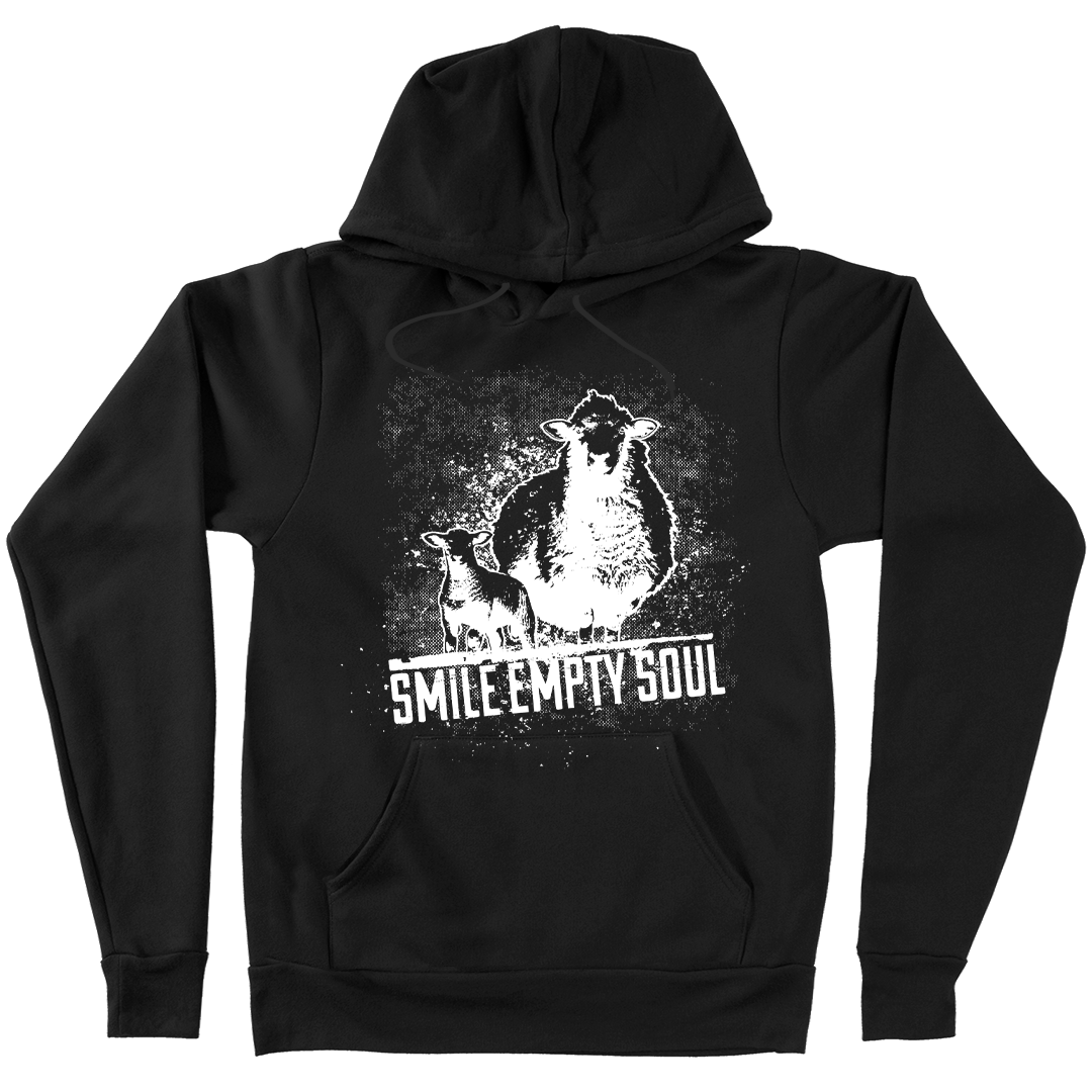 A unisex fleece pullover hoodie in black with Smile Empty Soul "Sheep" graphic printed on the front.
